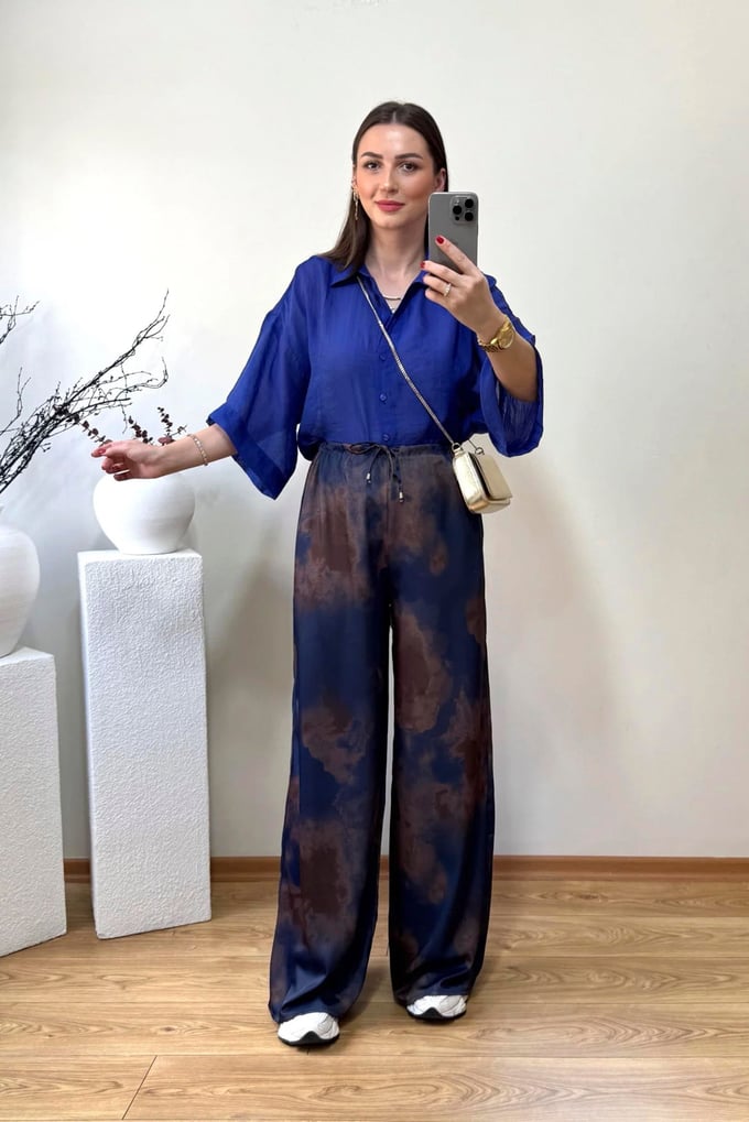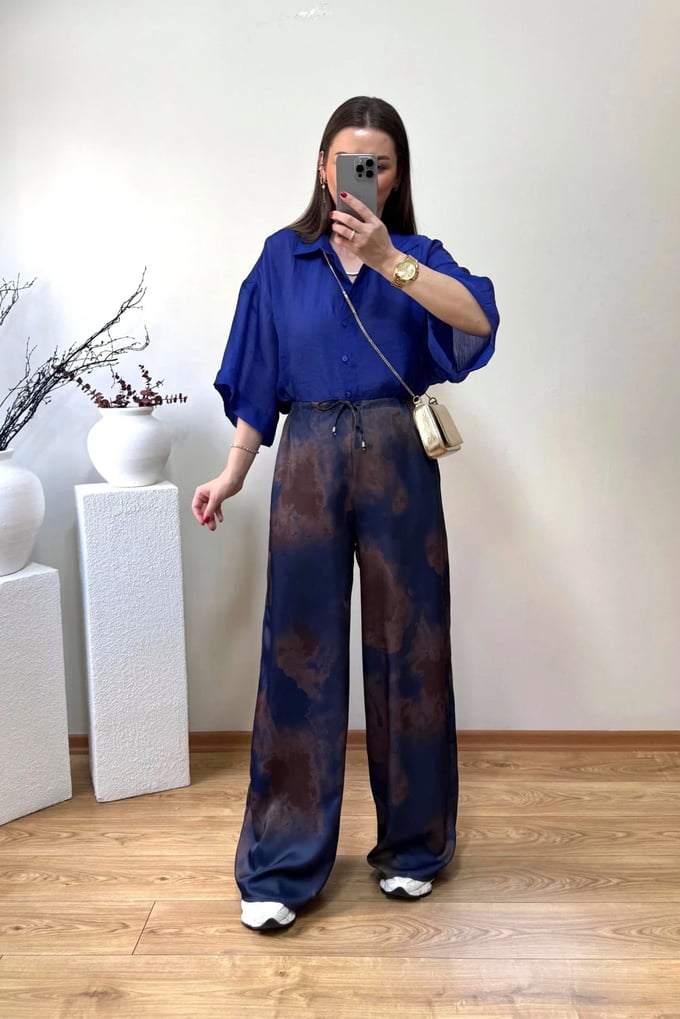 Beli Lastikli Desenli Saten Pantolon – Rahat ve Şık