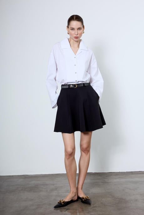 Kemerli Parçalı Kısa Etek – Modern ve Şık
